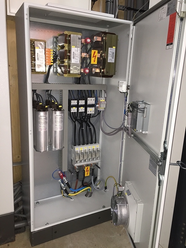 Vaste inbouw meet- en analyseapparatuur van Janitza, blindstroomcompensatie (CosPhi) en (dynamische) harmonische filters.